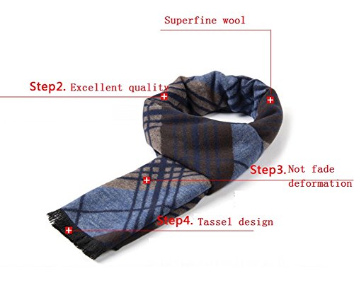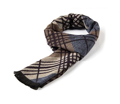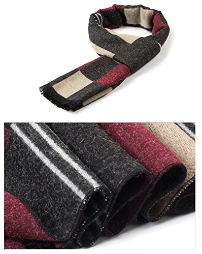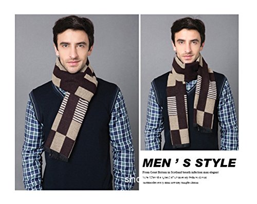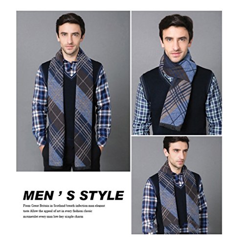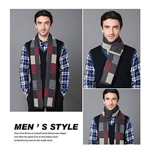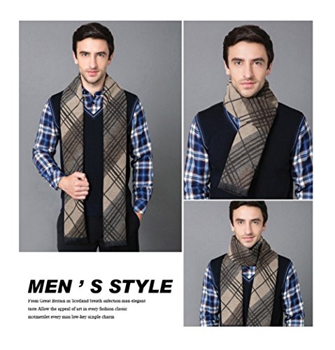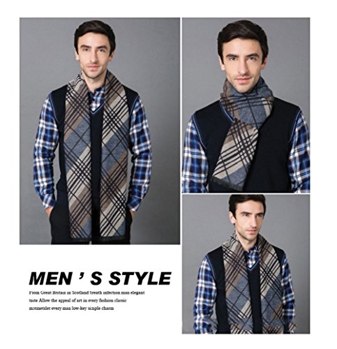 | Kagogo Mens Winter Scarf, Faurn Plaid Stripes Long Cashmere Pashmina Feel Warm Scarves |