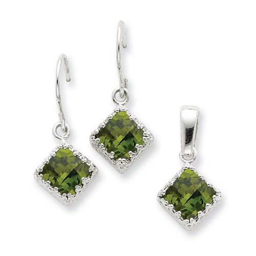 -. Title : IceCarats® Designer Jewelry Sterling Silver Olivine Cz Earrings And Pendant Set
