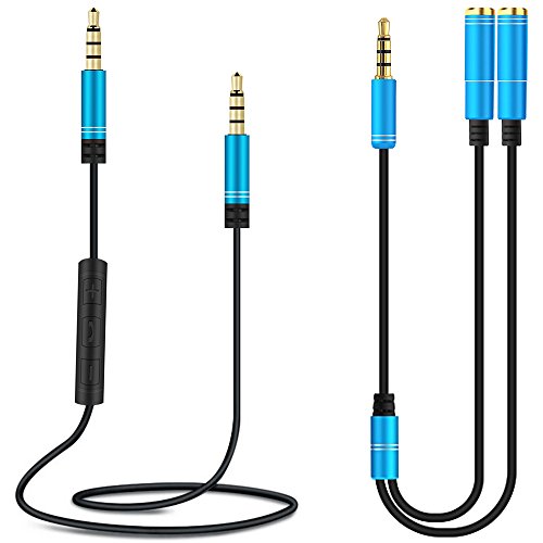 3.5mm AUX Cable with Audio Y Splitter Adapter, AFUNTA 3.93ft Male to Male Auxiliary Cable with Mic and Volume Control for Smartphone Tablet Laptop Speaker Headset Car Stereo