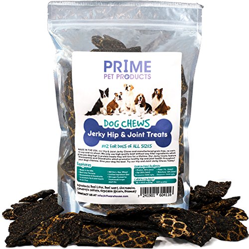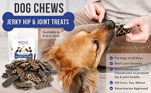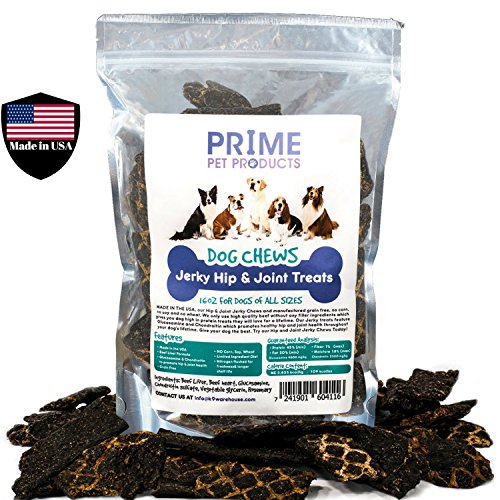 ✅GIVES YOUR DOG RELIEF FROM HIP & JOINT PAIN: Wouldn't you love to see your dog run and play like a puppy again..THEN you'll love how the Prime Pet Products Hip & Joint Dog Chew Beef Jerky Treats leverages the power of glucosamine and chondroitin to effectively and naturally help your pet feeling younger and prevent a slew of common dog health issues
