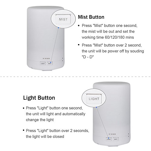 MIZOO Ultrasonic Aroma Essential Oil Diffuser 180ML Tiny Essential Cool Mist Humidifier with 7 LED Color Changing, Adjustable Mist Mode and Timer Settings