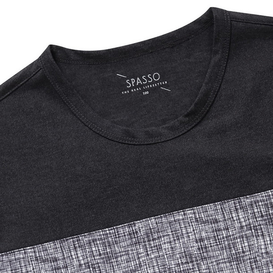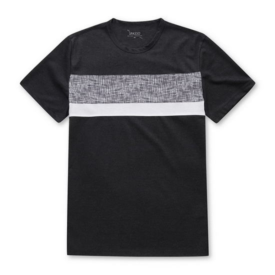 - 배색 컬러의 블럭 디테일로 모던한 남성 티셔츠.