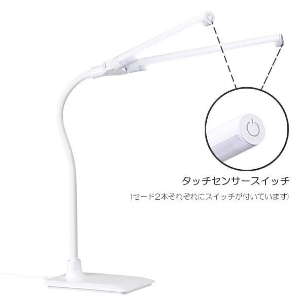 | 仕様 | 消費電力:約10W(約5W×2・全点灯時) 設計寿命:約40000時間 器具光束:約690lm(全点灯時) 光源色:白色LED(交換不可) 色温度(K):約5000 照度:約2410lux(全点灯時) 調光機能:あり 灯数:2 スイッチ:タッチセンサー コード長:約1.5m |