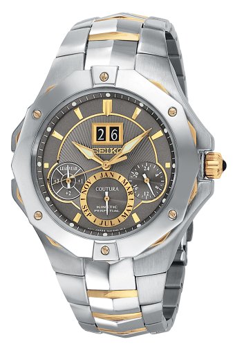 -. Binding : Watch -. Brand : Seiko -. Department : mens -. EAN : 0029665145314 -. Feature : Kinetic movement; Functions without a battery; Powers Kinetically with the movement of your arm / Sapphire crystal / Case diameter: 41.5 mm / Stainless steel case; Charcoal dial; Date function / Water resistant to 330 feet (100 M): suitable for snorkeling, as well as swimming, but not diving -. Label : Seiko -. Manufacturer : Seiko -. Model : SNP016 -. MPN : SNP016 -. PartNumber : SNP016 -. ProductGroup : Watch -. ProductTypeName : WATCH -. Publisher : Seiko -. Studio : Seiko -. Title : Seiko Men's SNP016 Coutura Kinetic Perpetual Watch -. UPC : 029665145314