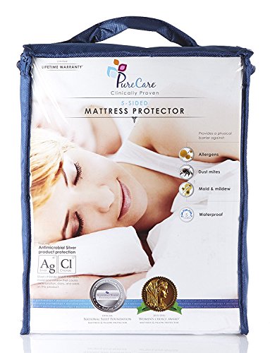 -. Brand : PureCare® -. Color : White -. Feature : WILL NOT ALTER THE COMFORT OF YOUR MATTRESS: you wont even know its there!! / LIGHTWEIGHT PERFOMANCE FABRIC: you'll fall in love with the soft amazing feel / ALLERGEN FREE: clinically proven Doctor recommended / 5-SIDED WATERPROOF PROTECTION: works against blood and water / MACHINE WASHABLE: easy to clean keep it like new -. Label : PurCare -. Manufacturer : PurCare -. ProductGroup : Home -. ProductTypeName : HOME_BED_AND_BATH -. Publisher : PurCare -. Studio : PurCare -. Title : PureCare Premium 5-Sided Mattress Protector, Waterproof Allergy Mattress Cover, Dust Mite Cover Clinically Proven Antibacterial Machine Washable,