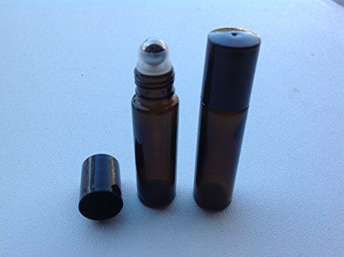USA 144 - 10ml AMBER Glass Roll On THICK Bottles (144) with Stainless Steel Roller Balls - Refillable Aromatherapy Essential Oil Roll On (144)
