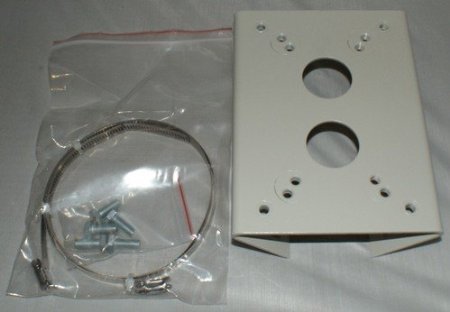 -. Feature : Weather Proof / Designed for mounting on a pole / Poles clamps are adjustable 50mm to 185mm (Diameter) / Suitable for large size CCTV Cameras and PTZ cameras / 1x PTZ / CCTV Camera Corner Mounting Bracket, 2x Adjustable Pole Clamps
