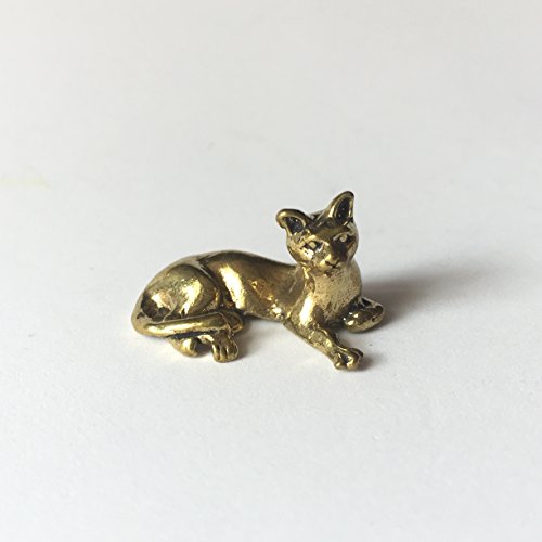 -. Title : ALONG - Sit Cat Brass Dollhouse Miniature Animal Collectibles Furniture Decor Figurines