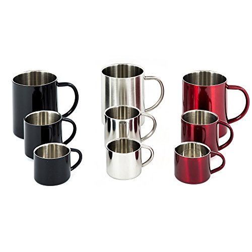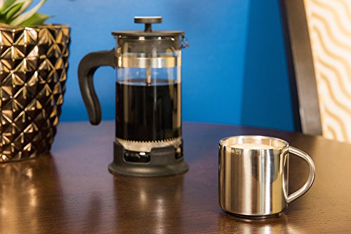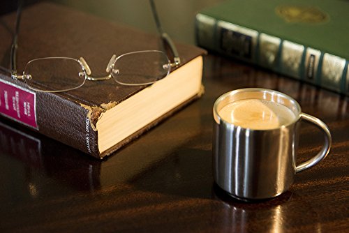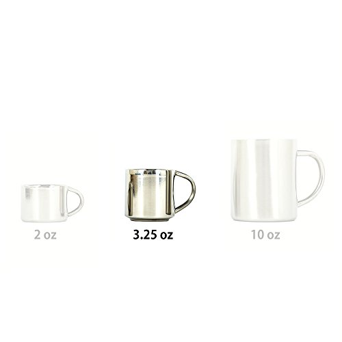 Studio : Farnsworth Lloyd Publisher : Farnsworth Lloyd Product Description Our Story In 2016 Farnsworth Lloyd set launched a set of espresso cups that were handsome, functional, durable, and affordable. They were a resounding success, customers loved them and requested we make other sizes available. In early 2017 we added a set of matching 12 oz. double wall coffee mugs, and now we are proud to present our new XL Espresso Cup sets. Stylish Espresso Cup Sets Available in black, Red, or Silver we offer Espresso Cup Sets designed to match any style. The silver Espresso Cups look great and can blend in with a modern minimalist style or stand out as a conversation piece in a more traditional setting. Durable Functional silver Espresso Cups Double wall silver espresso cups made in 18/0 Stainless Steel keep the heat or cold on the inside preventing burnt fingers or condensation and can survive the occasional drop or spill better than glass or cermaic. Now Double the Capacity By popular demand this new style can hold a maximum capacity of 4oz, providing 3.5 oz (`100 ml)of usable capacity for your Espressos, Doppios, Ristrettos, Lungos, Macchiato, Cafe Noisettes, Cortados and more. These will fit King of Joe Espresso Shot Tassimo Shot T-Diskx, along with other similarly sized single servings pods from Keurig, and Nespresso, or full-size espresso machines from Breville, Gaggia, etc. Note: These are double shot espresso cups, they have a maximum usable capacity of three and a half fluid ounces (3 1/2 fluid ounces, 103 ml, one hundred three milliliters). Each cup has an interior diameter of two and three-eighth inches (2.375", ~5.5cm) and an interior height of two and one-quarter inches (2.25", ~6cm). Hand wash only with warm water and gentle detergent. 0 |