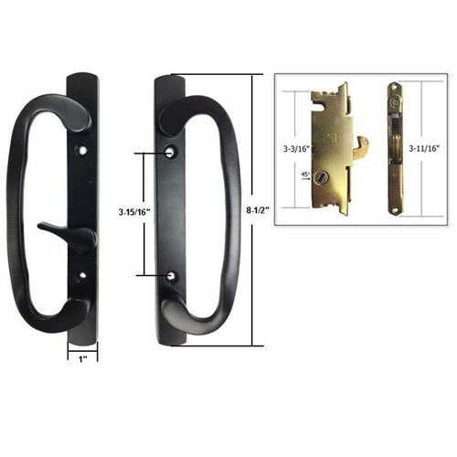 -. Title : STB Sliding Glass Patio Door Handle Set with Mortise Lock, Black, Non-Keyed, 3-15/16" Screw Holes