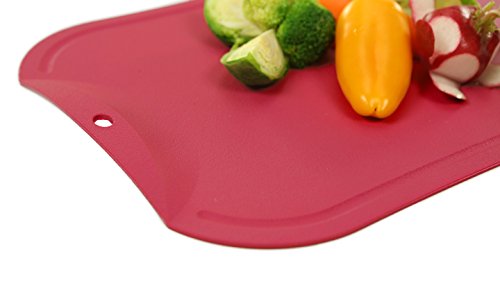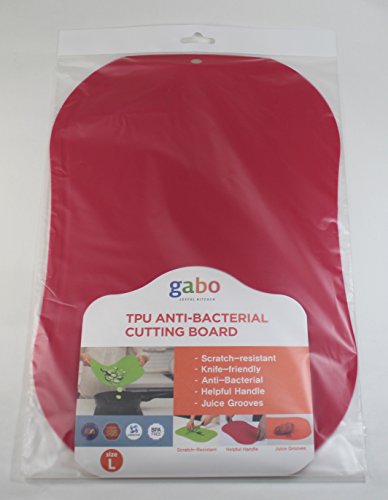 gabo TPU Antimicrobial Cutting Board with Handle, Scratch Resistant, Flexible, Knife friendly, Non-Slip, Juice Groove, Dishwasher Safe (Red)