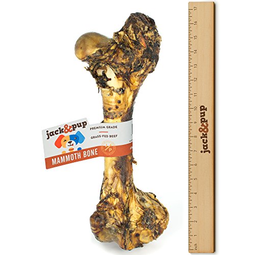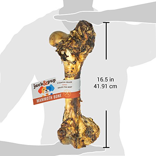 -. Feature : RICH MEATY FLAVOR - The Jack&Pup Mammoth Bone Dog Treat is a beef fr bone along with its two large knuckles. Guaranteed to satisfy even the most aggressive chewers. Prepared by slow roasting and naturally smoked along with pieces of tendon and meat, to enhance its flavor and provide a hearty and savory dog treat. Your canine will be entertained for many hours, chewing away on this giant bone and enjoying its' delicious flavor! / TOP QUALITY - Sourced from grass fed, free range cattle, and raised without any added hormones or antibiotics, resulting in a healthier and better tasting treat. Processed in a USDA Human Grade Certified and Inspected facility. Each Beef Mammoth Dog Bone Treat is handpicked and inspected to ensure quality and perfect consistency. Naturally odor free, without the use of any preservatives or chemicals. / 100% DIGESTIBLE & SAFE - Guaranteed to be fully digestible and guaranteed not to cause any side-effects. The Jack&Pup Beef Mammoth Bone Dog Treat is a natural, protein-rich, one-ingredient dog chew treat, without any additives or artificial ingredients. Our careful and natural preparation of the mammoth dog bone treat effectively eliminates all bacteria and contaminates; making its' consumption fully safe. / HEALTHY -Full of essential fatty acids, vitamins and minerals (calcium, iron, phosphorus, zinc, selenium, magnesium and manganese). / SUPPORTS HEALTHY TEETH, GUMS & JAWS - Helps keep the dog's teeth healthy and clean. Effectively removes tartar build-up and plaque, strengthens gums and exercises the jaws. / Perfect for medium and large dogs.