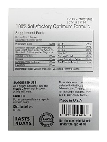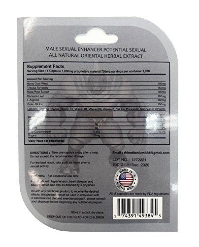 As a dietary supplement take one capsule 2 hours prior to sexual activity with water