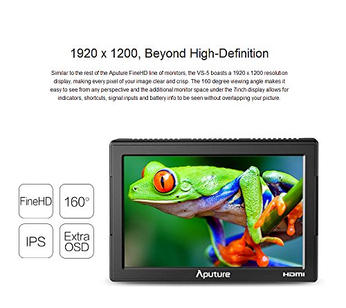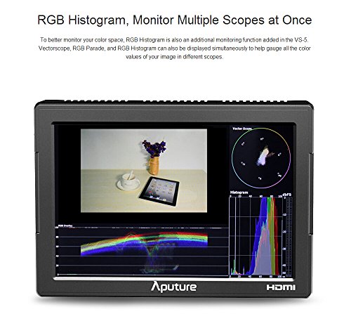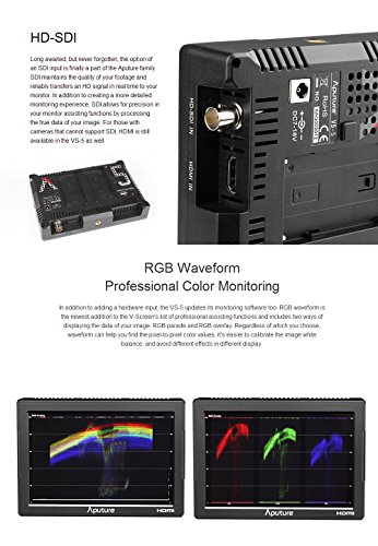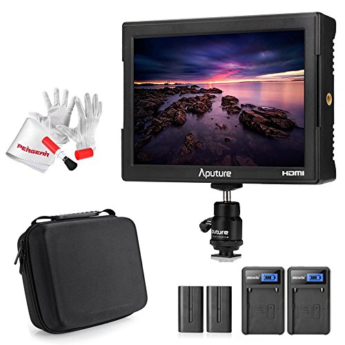 Aputure VS-5 7 Inch SDI HDMI Camera Field Monitor Features RGB Waveform/Vectorscope/Histogram/Zebra/False Color - With Fully-Enclosed 10" Sun Hood, 6600mAh Battery Kit and PERGEAR Carrying Case