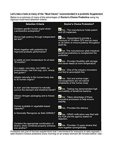 -. Title : Probiotic Supplement -- Doctor's Choice: 12 Super-Strain Probiotics - 60 - 300 mg Veggie Caps 1 X Per Day - Contains Living Robust Intestinal Flora Strains -- Acid & Bile Resistant - Has A Patented & Trademarked Human Strain Lactobacillus Acidophilus