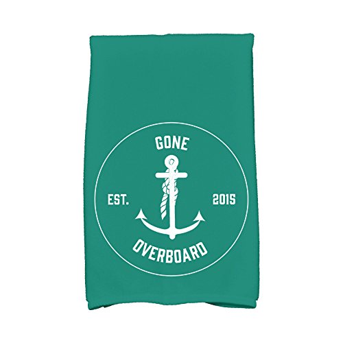 E by design KTWN414GR27 Gone Overboard Word Print Kitchen Towel, 16" x 25", Green