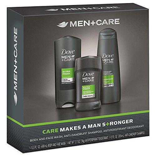 Studio : Dove Men Care Publisher : Dove Men Care Binding : Misc. Product Description The Dove Men Care Extra Fresh Gift Pack is the Perfect Everyday or Holiday Gift Pack for men. The pack contains all of the key men's products needed for his morning routine, from the #1 Award Winning Men's Grooming Brand. This gift pack for men includes two 13.5oz Dove Men Care Extra Fresh Body Washes. Uniquely formulated for men's skin by the #1 Dermatologist Recommended brand, this men's body wash with MICROMOISTURE technology hydrates for healthier, stronger skin and is clinically proven to fight dry skin better than regular men's body wash. The ultra-light formula activates when lathering, helping to hydrate skin and protect it against dryness and leaving a clean, crisp scent. The formula is hypoallergenic, noncomedogenic, and gentle enough to use on your face while also delivering a fresh clean. The pack also contains a 12oz bottle of Dove Men Care Fresh and Clean Fortifying Shampoo and Conditioner. This 2-in-1 Shampoo and Conditioner deeply cleans and invigorates hair with a refreshing effect, and is infused with caffeine menthol. It helps strengthen hair, leaving it visibly healthy, thicker and resilient. This gift set also includes the Dove Men Care Extra Fresh Antiperspirant Deodorant Stick designed to deliver up to 48 hours of sweat and odor protection while helping to protect skin from irritation. This men's deodorant has an invigorating, refreshing scent so you'll feel fresh throughout the day. For his travel needs, this gift pack also includes a Travel Size Dove Men Care Clean Comfort Antiperspirant Deodorant Stick, perfect for travel or a gym bag. The men's antiperspirant stick protects against sweat and body odor for 48 hours, leaving a crisp, subtle scent to keep you smelling great all day. 0