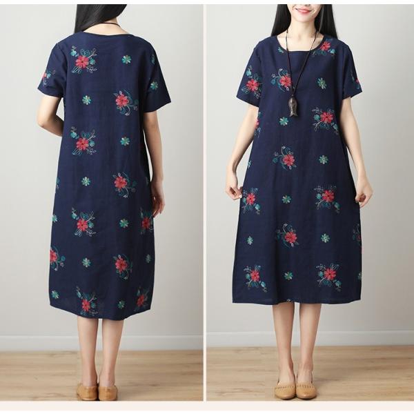 レトロな花柄デザインのマキシ丈ワンピース。