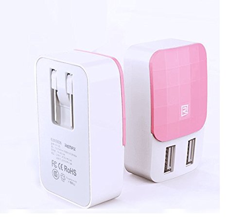 USB Charger, Allytech REMAX 2.4A 12W Dual USB Wall Charger Dust-proof Travel Charger with Foldable Plug for iPhone 6s 6 plus 5 5s 5c, iPad, samsung galaxy, and Android or USB Devices (Pink)