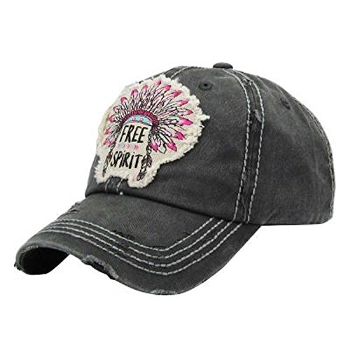 Free Spirit Black Washed Cotton Vintage Ball Cap.