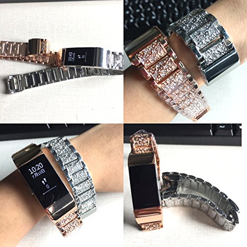 ECSEM Bling Bling Wristbands for Fitbit Charge 2 Bands, easy access to buttons, No need loading-and-unloading tool, smartwatch wristbands bands clasps for Fitbit Charge 2 Bands. Perfect fit for your Fitbit Charge 2 Bands activity tracker and comfortable wearing experience