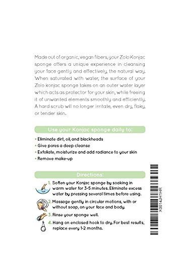 Zolo Konjac facial sponge daily to eliminate dirt, oil, and blackheads, or remove make-up. Give those pores a good, deep cleanse. Moisturize, exfoliate and return the natural glow to your skin. Scrub away as hard as you like, for a good scrub will no longer irritate - even dry, flaky, or sensitive skin.