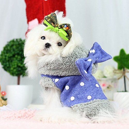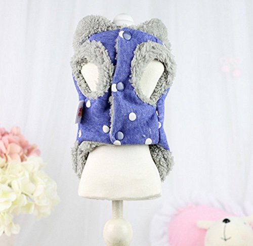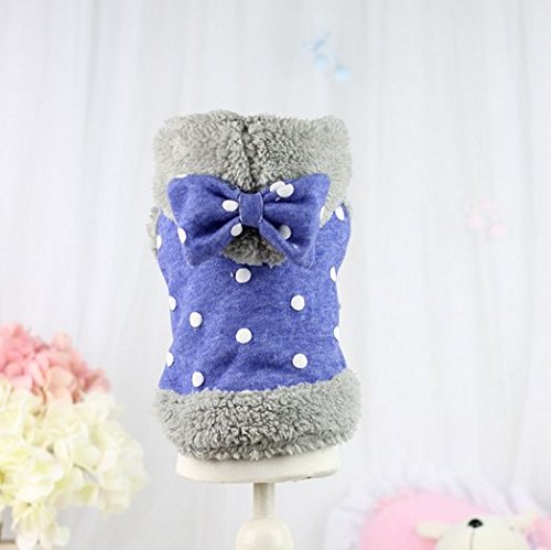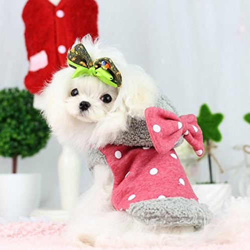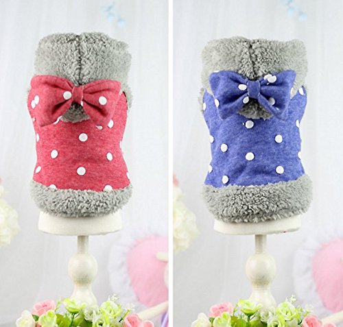 -. Title : Zerotone Hooded Fleece Winter Coat Polka Dot Bow for Small Pet Dog Cat 2 Colors XS-XL