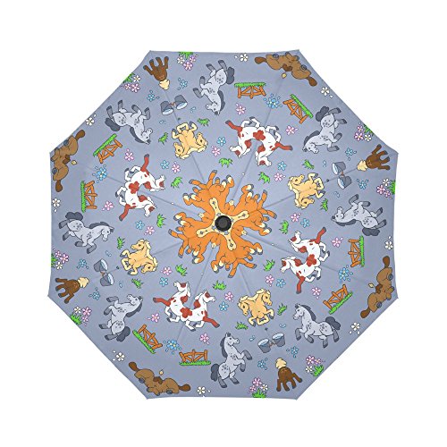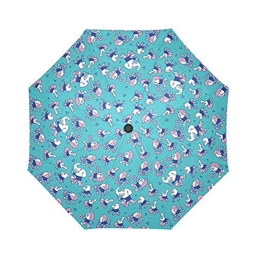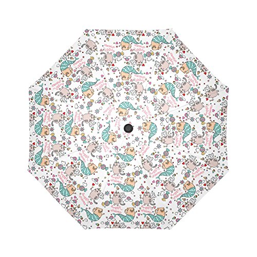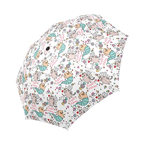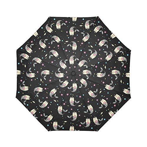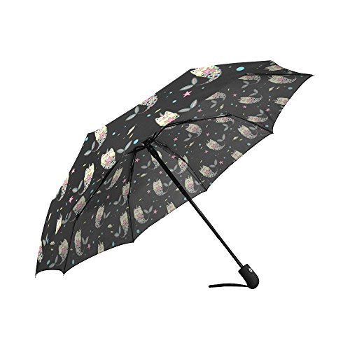 | InterestPrint Cat Silhouette Animal Windproof Compact One Hand Auto Open and Close Folding Umbr... |