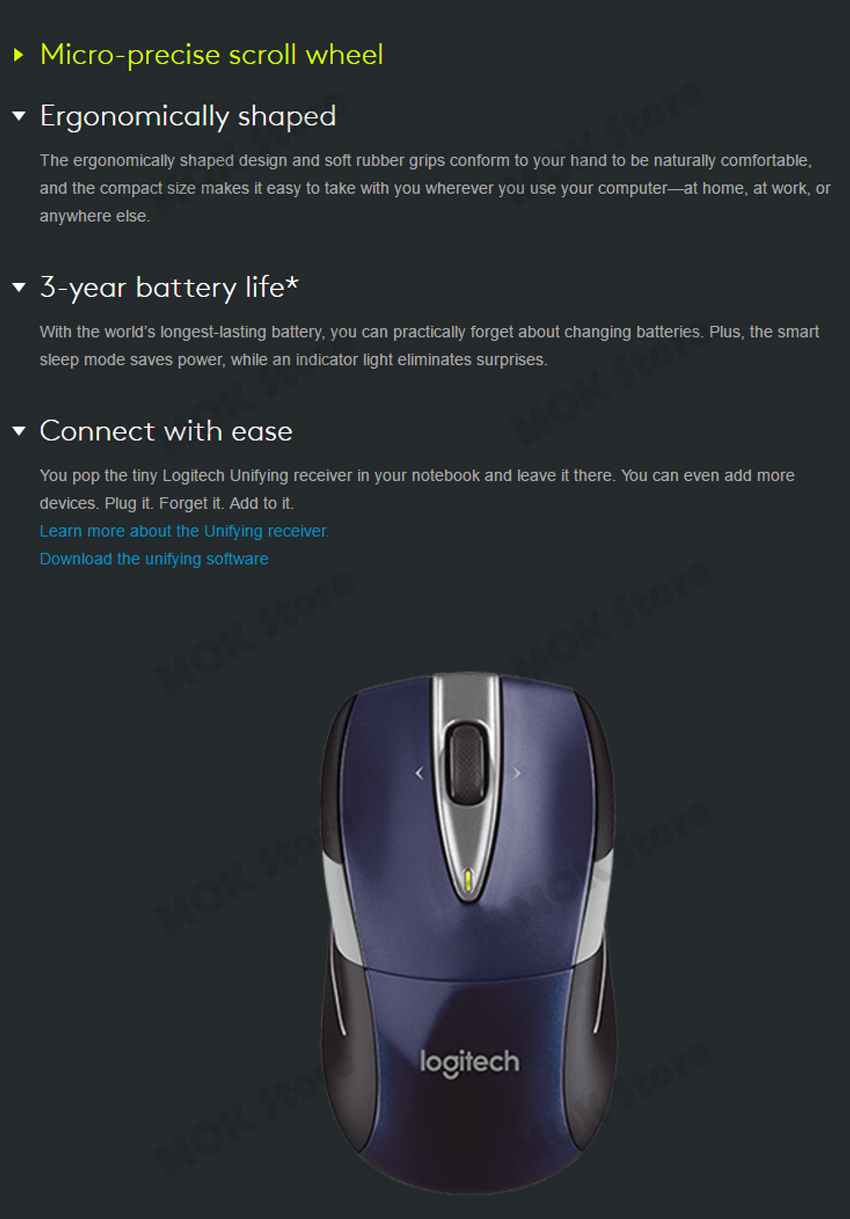 - Wireless technology: Advanced 2.4 GHz wireless connectivity(Unifying supported)