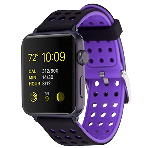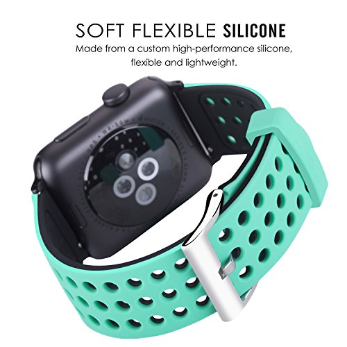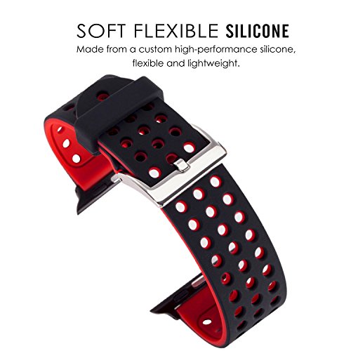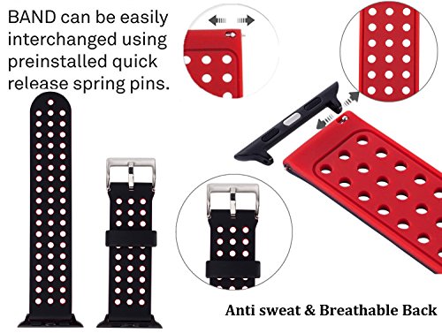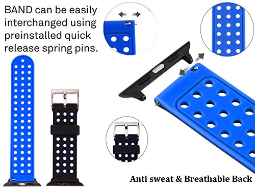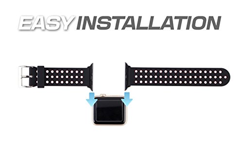 -. Feature : General Compability - Perfectly fit for Apple Watch Series 1 / 2 / Specificity - Personalize your Apple Watch fashionable and unique with the great replaceable strap / High Grade Material - Made from durable,soft, lightweight silicone which reduces weight and improves ventilation / Skin Friendly - The smooth material drapes elegantly across your wrist and feels comfortable next to your skin / Size - Fits for wrist size 5.5" - 8.1" with classic bunkle