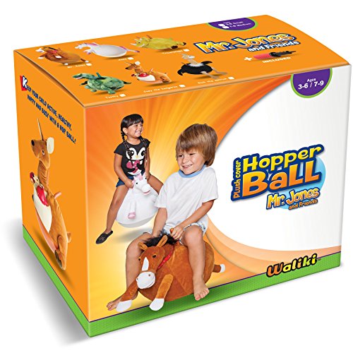 WALIKI’S PLUSH COVER HOPPER BALL (also known as Bouncy Ball with handles, Kangaroo Bouncer, Hopping Ball, Hoppity Hop, Sit & Bounce, Jumping Ball) Yeeeeha!!! Give your children a Hop Ball and watch them go! Thicker and more durable than other generic brands on amazon, our Hopper Balls are a fabulously fun way for kids to exercise without even knowing it. We guarantee children will burn off their extra energy and parents will enjoy watching the action. Free double-action pump included. Go all the way Try an adult size Hippity Hop & bounce with your child. Why? We think adults deserve to have fun too! And because we can. Not a time travel machine. Birthday parties If you think one child bouncing is fun, imagine an entire birthday party bouncing together, let every child take a ball home as a party favor. That’s exciting! Not just for fun WALIKI’s extensive toy line is used in kindergartens and schools to stimulate creativity, movement and exercise. Therapists enlist our Hopping Balls as a therapy ball for kids, a toy for autistic children and a fine-motor improvement tool ADHD toy. So much Fun Professionals have many uses for the Hop Ball but we make it with FUN in mind, kids all over the world love them! There is a video of people jumping in over 40 countries. Safety Waliki’s bouncy toys are designed with love in Miami, Florida, and made with care in PRC. The plug is a small part so children under 3 should have adult supervision. They conform to ASTM-963 toy safety standard. Keep the kids happy and entertained with Waliki’s colorful and cool Jumping Balls! Waliki Toys, based in Florida, was inspired by a wonderful grandmother. Our goal is to keep children happy, busy and healthy by making exercise fun. We produce a huge range of ride on bouncy toys, bounce houses, and are proud resellers of Rody Horse, which is made by Gymnic.Feature
