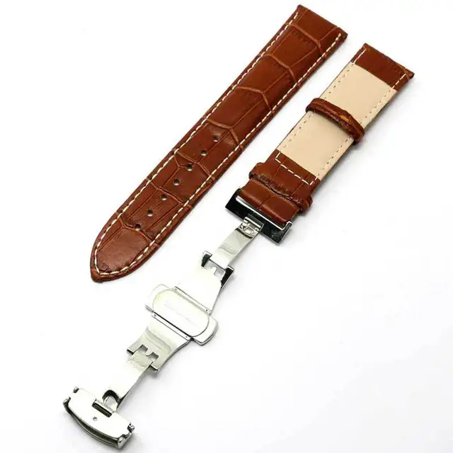 22 미리메터 소프트 Sweatband 정품 가죽 스트랩 라이트 브라운 스틸 버클 손목 시계 밴드 PD012322