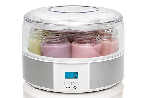 Studio : Euro Cuisine Inc Publisher : Euro Cuisine Inc Binding : Kitchen Product Description The Euro Cuisine Automatic Yogurt Maker, make homemade yogurt and does all the work for you! Simply pour your prepared yogurt mixture into the jars, set the digital countdown timer, and wake up the next morning to delicious yogurt. Yogurt makers let you control the sweetness, flavor, consistency, and fat content of your yogurt, so you can feel in charge of what you're eating. The seven - 6oz Glass jars are great for making different flavors, and their lids feature a dial that lets you set the date. 0