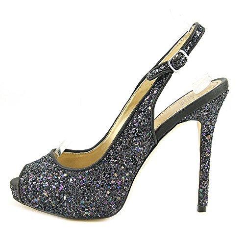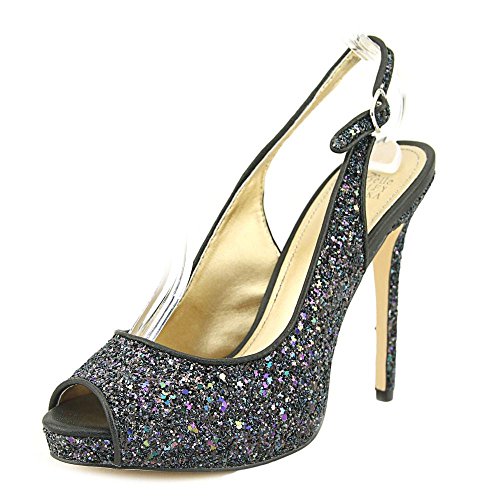 (Badgley Mischka)/Women's/Pumps/DIRECT FROM USA/Badgley Mischka Evie Women Open-Toe Synthetic Black Slingback Heel