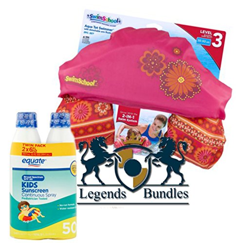 Studio : Misc Publisher : Misc Binding : Toy Product Description Learn to swim with this grow with me training life jacket. Your child will build swimming skills with balanced flotation in two easy steps. Keep your precious kids protected from the sun with 2 Bottles of Equate Kids Spray sunscreen. Give your child a solid swim foundation with this customizable floatation device which will help your child get used to being in the water and develop essential swimming skills. 0