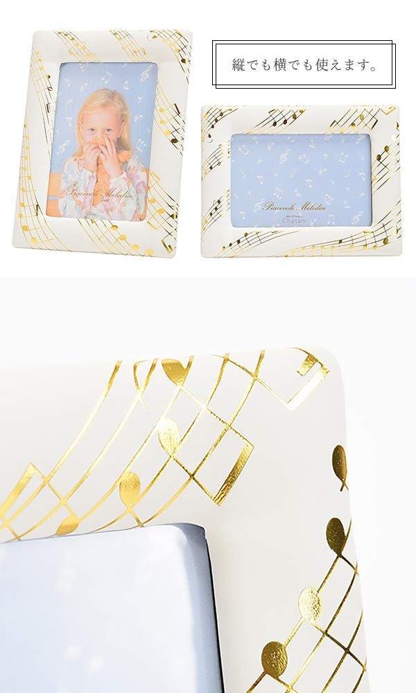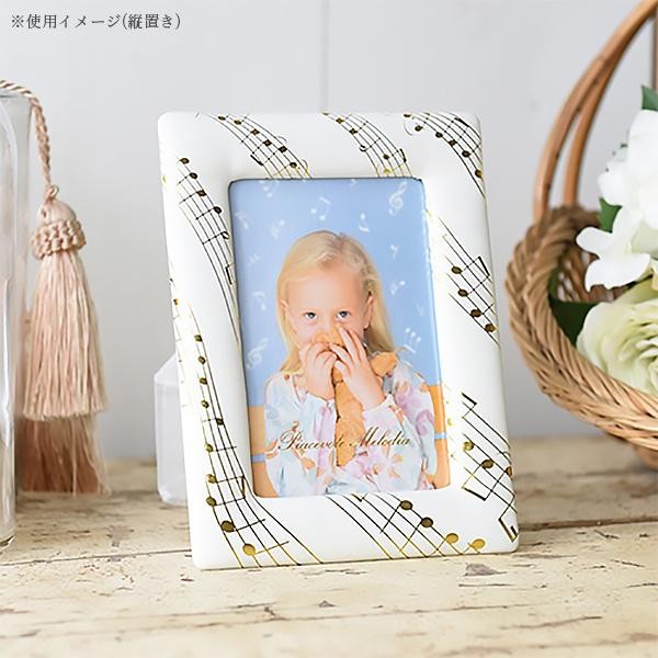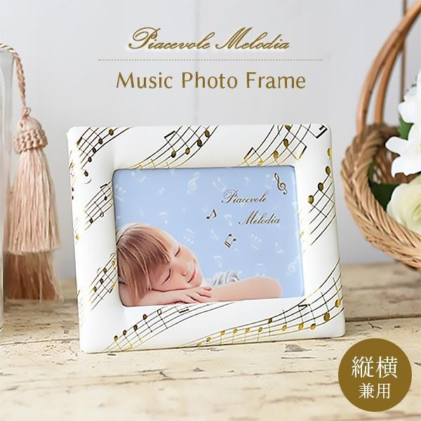 | 音符モチーフがアクセントとなり、可愛くなりすぎず上品な印象のフォトフレームです。マットな質感の生地に箔押しした音符が映えます。入園・入学祝い・お誕生日や音楽に携わっている方への贈り物にもおすすめ。 |