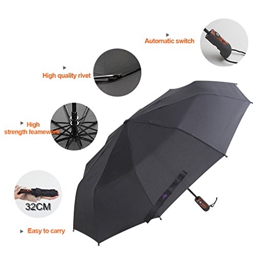 -. Binding : Misc. -. Brand : DTWOTO -. Color : Black -. EAN : 0600740998416 -. Feature : • CONVENIENT AUTO OPEN AUTO CLOSE - One Second One Hand Operation. You don't want To wait another second to open the umbrella when You get out from Your Car In The Rains, especially during heavy rains. Experience the remarkable difference of staying dry to open/close the umbrella within a Second even when your hands are full. / • DURABLE FLEXIBLE & STURDY- 10-RIB CONSTRUCTION!! Most travel umbrellas are made with 6 or 8 ribs but DHWOTO is fortified with 10 ribs to minimize the chance of turning inside out. Ribs are resin-reinforced fiberglass - the best flexible material you'll find in the industry-which allows to bend thousands of time without any damage in case flipped inside out , the frame simply bounces back safely to Its normal shape. / • SUPERIOR WATER-RESISTANCE - The DHWOTO travel umbrella protects you in a heavy downpour with premium quality canopy which is made from high density durable 210PG (abrasion and mildew Resistant). Compare to other normal 190t canopy that water can be easily penetrated while DHWOTO canopy beads up and bounces off the water. Try to think about the Lotus Effect, 201PG was developed under this theory and totally prevent leakage and has the self cleaning ability. / • QUALITY WORKMANSHIP - Compact design with strong metal frame, special leahter handle provides comfortable grip, this elegant umbrella could be your protector and also a great gift to your family. / • LIFETIME GUARANTEE - We do our best to make our customers rest assured with DHWOTO, that's why we offer a LIFETIME GUARANTEE. For the first 90 days, we promise you full refund if it doesn't meet your expectations, and replacement warranty for the lifetime of your purchase. that's how confident we are that you'll be happy and keep coming back for more! -. IsAutographed : 0 -. IsMemorabilia : 0 -. Label : DTWOTO -. Manufacturer : DTWOTO -. MPN : DTWOTO02 -. PackageQuantity : 1 -. PartNumber : DTWOTO02 -. ProductGroup : Sports -. ProductTypeName : SPORTING_GOODS -. Publisher : DTWOTO -. Studio : DTWOTO -. Title : Unbreakable" Windproof Umbrellas Tested 55 MPH Travel Umbrella Innovative & Patent Protected, Auto Open Close, Won't Break If Inverted, Durability Tested 5000 Times - Lifetime Guarantee -. UPC : 600740998416