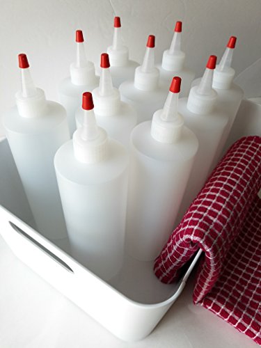 Studio : KELKAA Publisher : KELKAA Product Description The durable and sturdy HDPE plastic squeeze bottle is multi-used for so many different applications and 100% recyclable (resin recycle code #2). The natural clear high density polyethylene dispensing bottles including Yorker red caps tightly snap into place with pre-cut holes are producing even squeeze flow. For thicker liquids, you can cut a bigger hole to your need. Using them to store and dispense paint, glue, dye, water, or any other liquids for your arts crafts project, any DIY liquid products, as well as store condiments for your food, they are very multi functional and convenient. It's a perfect size for party with different kind of sauces or dressing. It's great for picnics or all kinds of everyday uses, cooks can fill bottles with BBQ sauce, ketchup, frosting, salad dressing and much more. Clear BPA-free and heavy duty plastic bottles make keeping up with refills a piece of cake. Available in a variety of sizes, and the pre-cut hole is provided in every bottle. You can choose the bottle size base on your needs. Happy cooking, crafting, or any DIY fun! 0