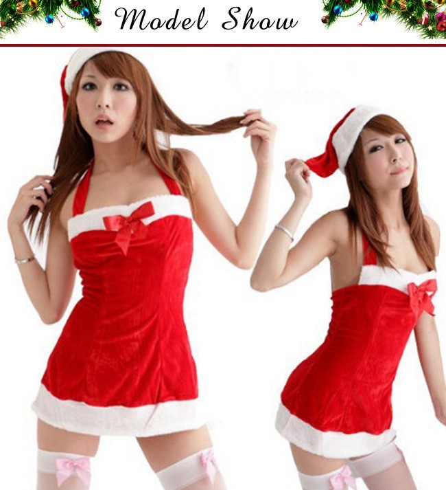 クリスマス コスプレ レディース セクシー サンタ 衣装 ホルターネック ミニ ワンピース 帽子 コスチューム サンタコス 仮装 変装 大人 服 サンタクロース セットアップ かわいい パーティーグッズ イベント用品 余興 xmas Christmas cos 女性用