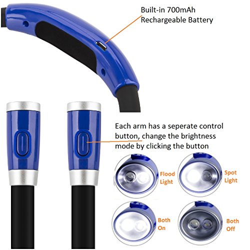 LUXJET LED Book Lights Rechargeable Neck Lamp for Reading at Night, Hands Free, 4 LED Bulbs, 3 Adjustable Brightness