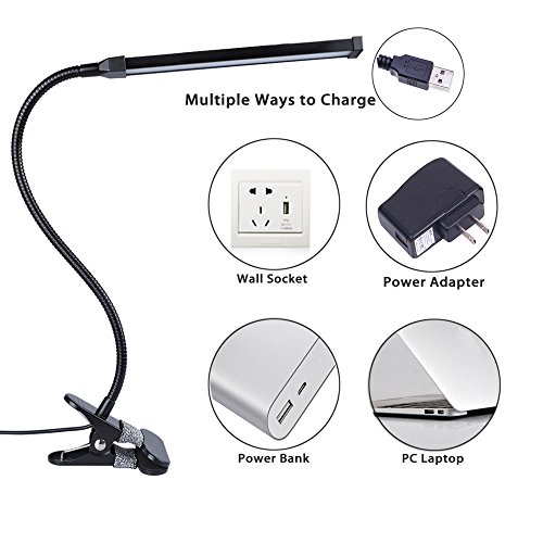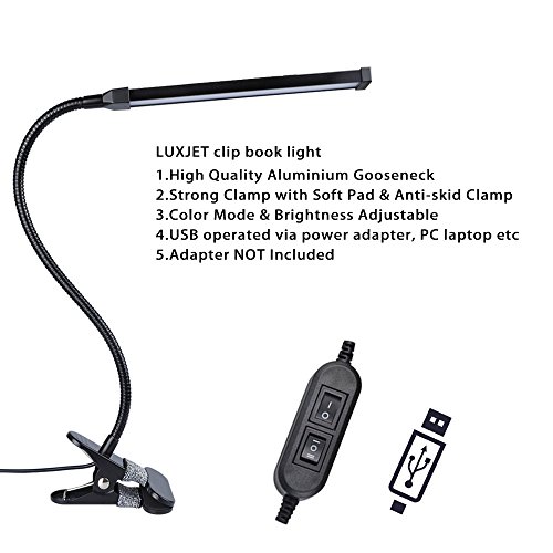 LUXJET Clip on Book Light, LED Reading Light, 2-Level Dimmer & 2-Mode Light Color Switchable w/ Flexible Arm, Aluminum Lamp Cover, for Headboard, Desk, Bedstead, Readers (AC Adapter Not Included)