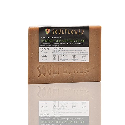 - 100% PURE, VEGAN, ORGANIC, HANDMADE COLD PROCESSED INDIAN FORMULATION: Soulflower Indian Cleansing Clay Soap is a pure vegan traditional Indian formulation with fuller’s earth (multani mitti), aloe vera gel, cucumber and papaya pulp, olive oil, castor oil, coconut oil and coconut milk.