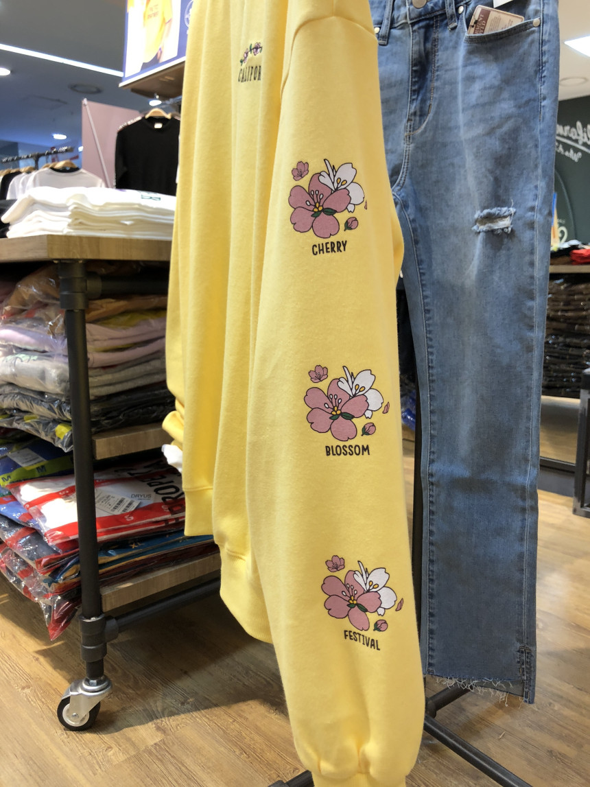 착용시 왼쪽 팔부분에는 벚꽃 프린트가 들어가