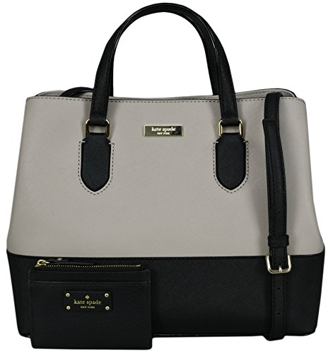 Bundled with two item: Womens satchel with magnetic closure ,an adjustable and removable strap, Size 9.2"h x 11.7"w x 5.5"d,adjustable strap 17" and 3" drop from handle , Crosshatched leather, matching trim with gold staple Kate Spade New York signature