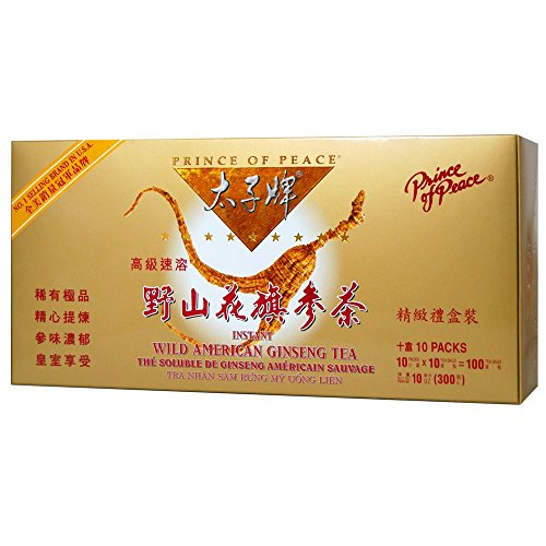 -. Binding : Misc. -. Brand : Prince Of Peace -. EAN : 0039278610116 -. Feature : **Authentic Extract Of 100% Pure Wild Top Grade American Ginseng Roots.** / Has been carefully selected, processed and packaged for your enjoyment from what is prized as one of the highest valued ginsengs in the world. / This ancient but still sought after natural gift to mankind has long been treasured and safely consumed by millions throughout the world for its exclusive properties - the Rb ginsenosides -. LegalDisclaimer : Caution: pregnant and lactating women should consult with their physicians before taking this supplement.*The above statements have not been evaluated by the FDA. This product is not intended to diagnose, treat, cure or prevent any disease -. PackageQuantity : 1 -. ProductGroup : Grocery -. ProductTypeName : GROCERY -. Title : Prince of Peace® Wild American Ginseng Instant Tea (100 Sachets) -. UPC : 039278610116