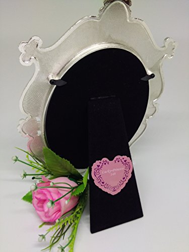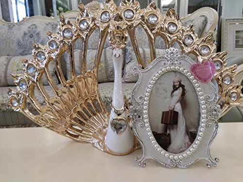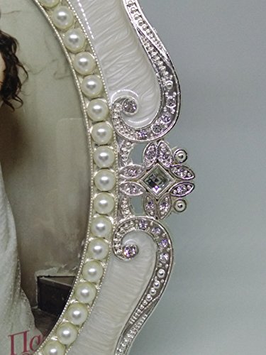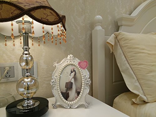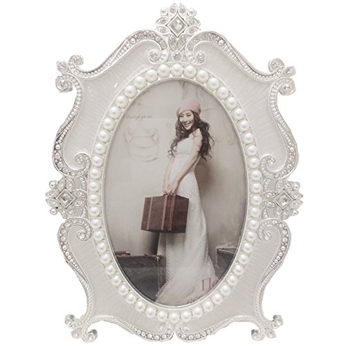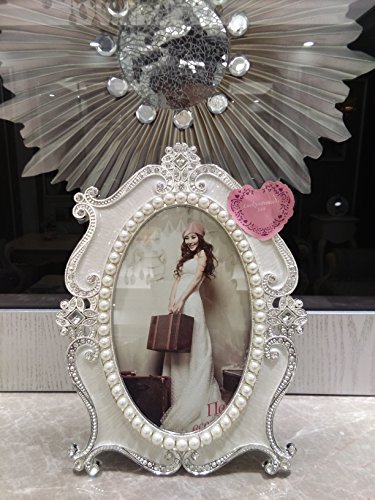 - 1.QUALIFY MATERIAL: the picture frame is made by Zinc metal, beautiful flowers pattern along the frame,decorating by elegant rhinestones and white pearls, suitable for a picture size 5-inch by 7-inch.