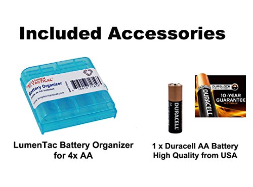 BATTERY INCLUDED - Comes with a Duracell AA battery and a LumenTac AA battery organizer that holds up to 4x batteries so you can grab and go!