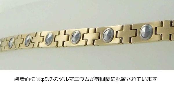 純チタン(JIS H4670)に、イオンプレーティング(IPメッキ)を施したブレスレットです。ミラー仕上げとマット仕上げのパーツが交互になった、合わせやすいシンプルなデザインです♪裏面には99.99%の高純度ゲルマニウムを使用しています。 |