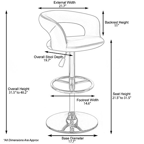 -. Brand : Zuri Furniture -. Feature : Overall: W 23" x D 19" x H 40". Seat height adjusts from: 21.5"-30.5". / Seat: 15 inch(W) x 16 inch(D) x 11 inch(H) / A wide seat makes this barstool extra comfortable. / Bar stool features a chrome base and an adjustable seat height to fit any counter. / Additional color swatches available. Please contact showroom for more information. -. Label : Zuri Furniture -. Manufacturer : Zuri Furniture -. ProductGroup : Furniture -. ProductTypeName : HOME_FURNITURE_AND_DECOR -. Publisher : Zuri Furniture -. Studio : Zuri Furniture -. Title : Monza Adjustable Height Swivel Armless Bar Stool with Chrome Base