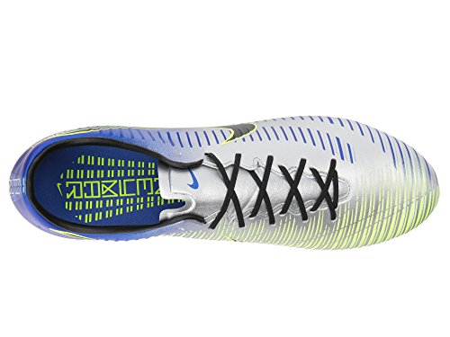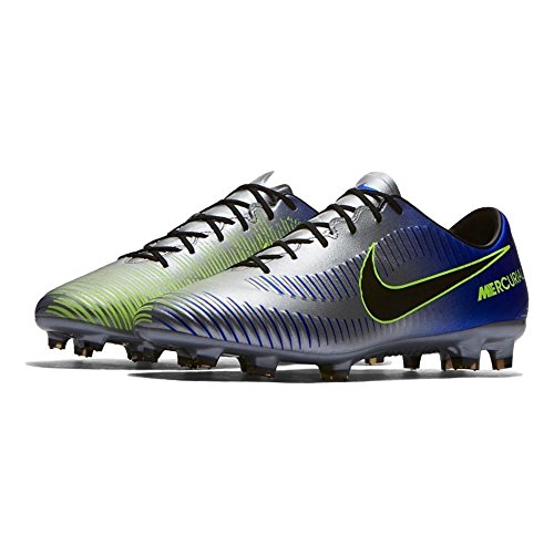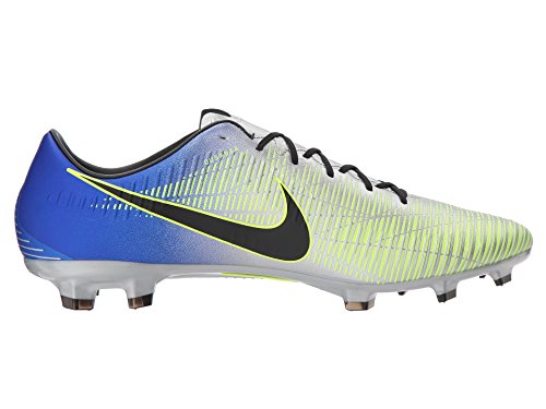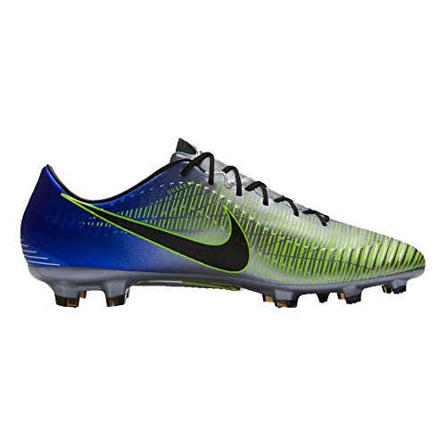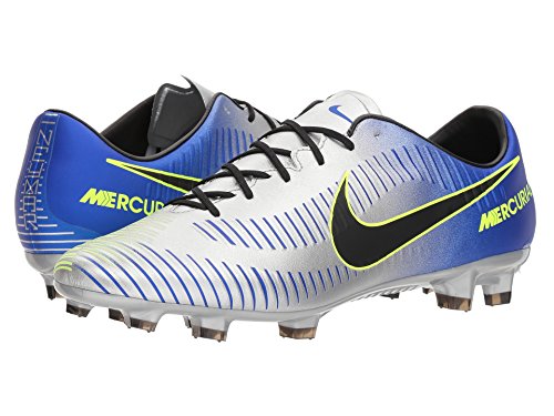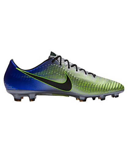 Binding : Apparel Product Description Neymar Jr. is one of the top strikers in the world right now. Due to his excellence on the field and his cultural influence off of it, Nike hooked him up with his own signature colorway in the latest Mercurial soccer cleats. If you're like Neymar Jr., using your speed to set up your runs on the field, this may be the cleat for you. The Nike Mercurial Veloce III NJR is the perfect cleat for the speedster on the team. With a micro-textured synthetic, lightweight-upper with textured speed ribs, the Mercurial Veloce III NJR offers players a soft, controlled touch that allows players to put the ball where they want it to go. The contoured, perforated sockliner provides excellent cushioning, making the cleat more comfortable on your foot and reducing stud pressure. With a reconstructed stud pattern engineered to create the optimal balance of traction, torque, and comfort and a Brazil-inspired colorway featuring a mainly bright blue base color, this cleat is perfect for the striker who is always ready to tear through the defense, leaving them dead in their tracks as the ball hits the back of the net. 0